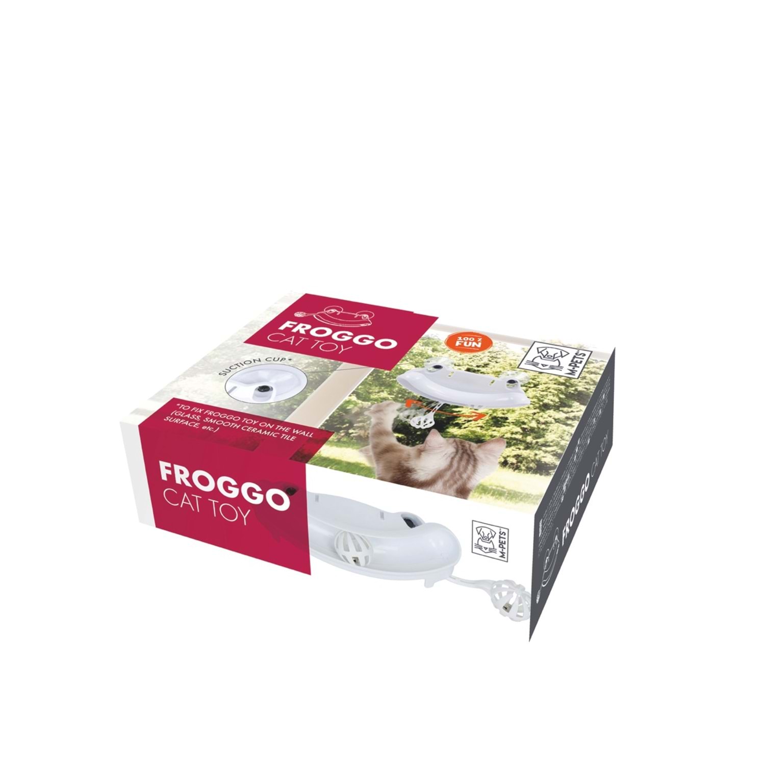 M-PETS Froggo, hem dikey hem yatay yüzeylere uyum sağlayan tasarımıyla kedinize yaratıcı ve enerjik bir oyun ortamı sunar.