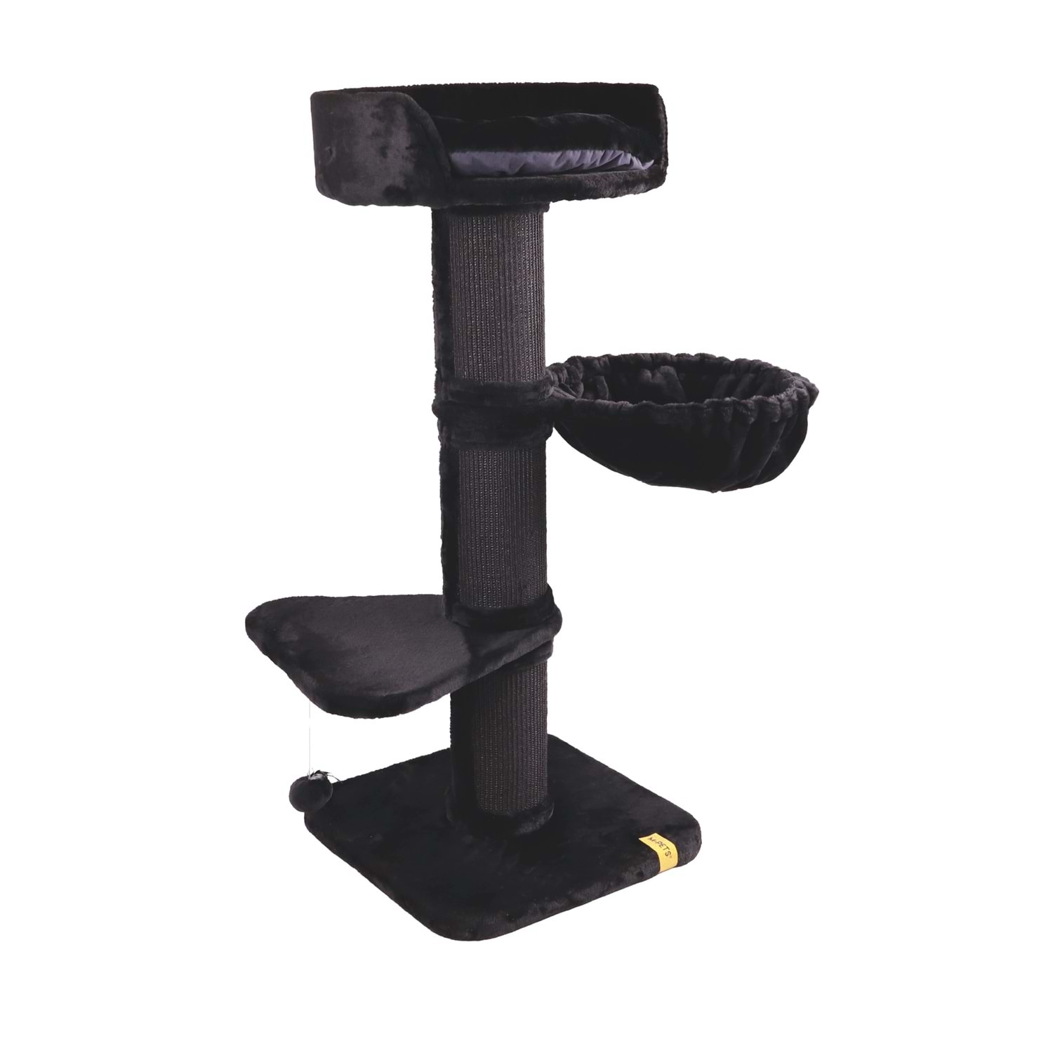 M-PETS Panther Premium Nido Kedi Tırmalama, yumuşak siyah kumaşıyla kedinize konforlu dinlenme alanları sunarken, çok katlı yapısıyla tırmanma ve keşfetme imkânı verir. Ø18 cm kalınlığındaki doğal tırmalama ipi kaplı direkleri kedinizin güçlü tırmalama ihtiyacını karşılar. Şık ve modern tasarımıyla evinize uyum sağlarken, sağlam yapısıyla uzun ömürlü kullanım sunar.