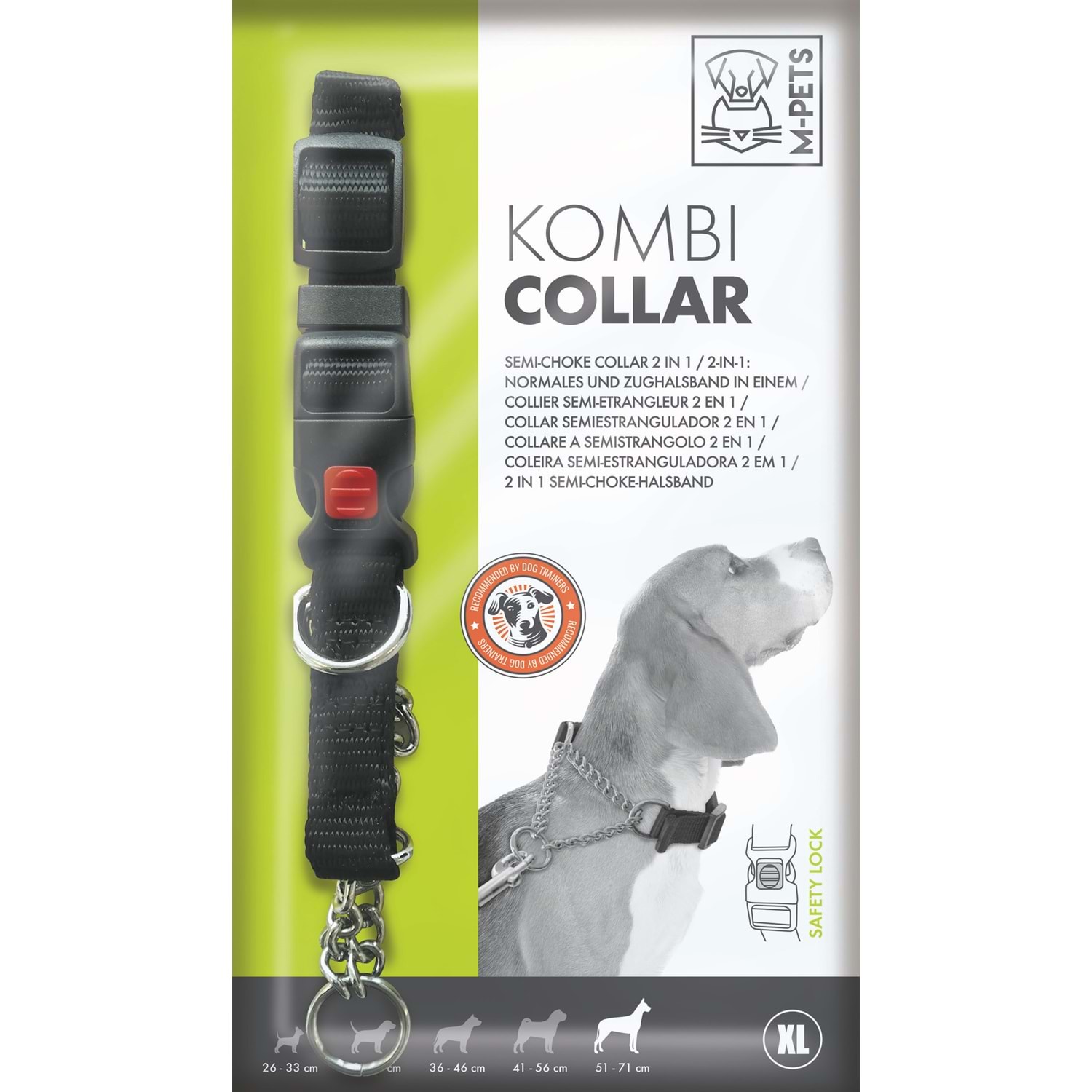 Hem klasik boyun tasması hem de yarı boğma eğitim tasması olarak kullanılabilen M-PETS Kombi 2in1, özellikle yürüyüş ve eğitim dönemlerinde güvenli kontrol sağlamak için tasarlanmıştır. Dayanıklı naylon malzemeden üretilmiştir. Yumuşak dokusu sayesinde konforludur. Üzerinde bulunan zincir parça sayesinde hafif gerilimle köpeğin dikkatini toplar ve istenmeyen davranışların önüne geçilmesine yardımcı olur. Güvenli kilit sistemi sayesinde kolayca takılır ve çıkarılır.
