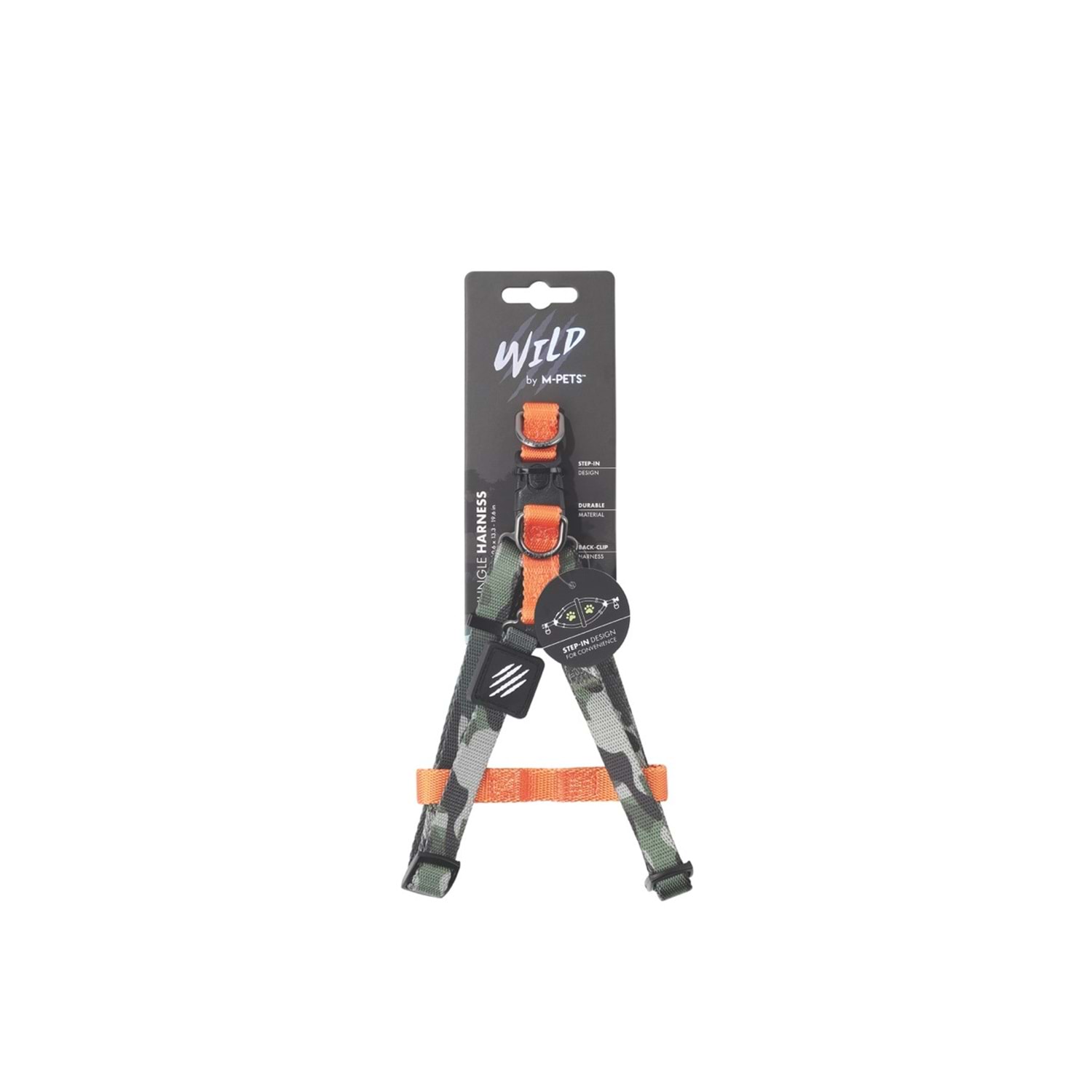 M-PETS Wild Jungle Göğüs Tasması, keşfetmeyi seven patili dostlar için güvenli, konforlu ve şık bir çözüm sunar.