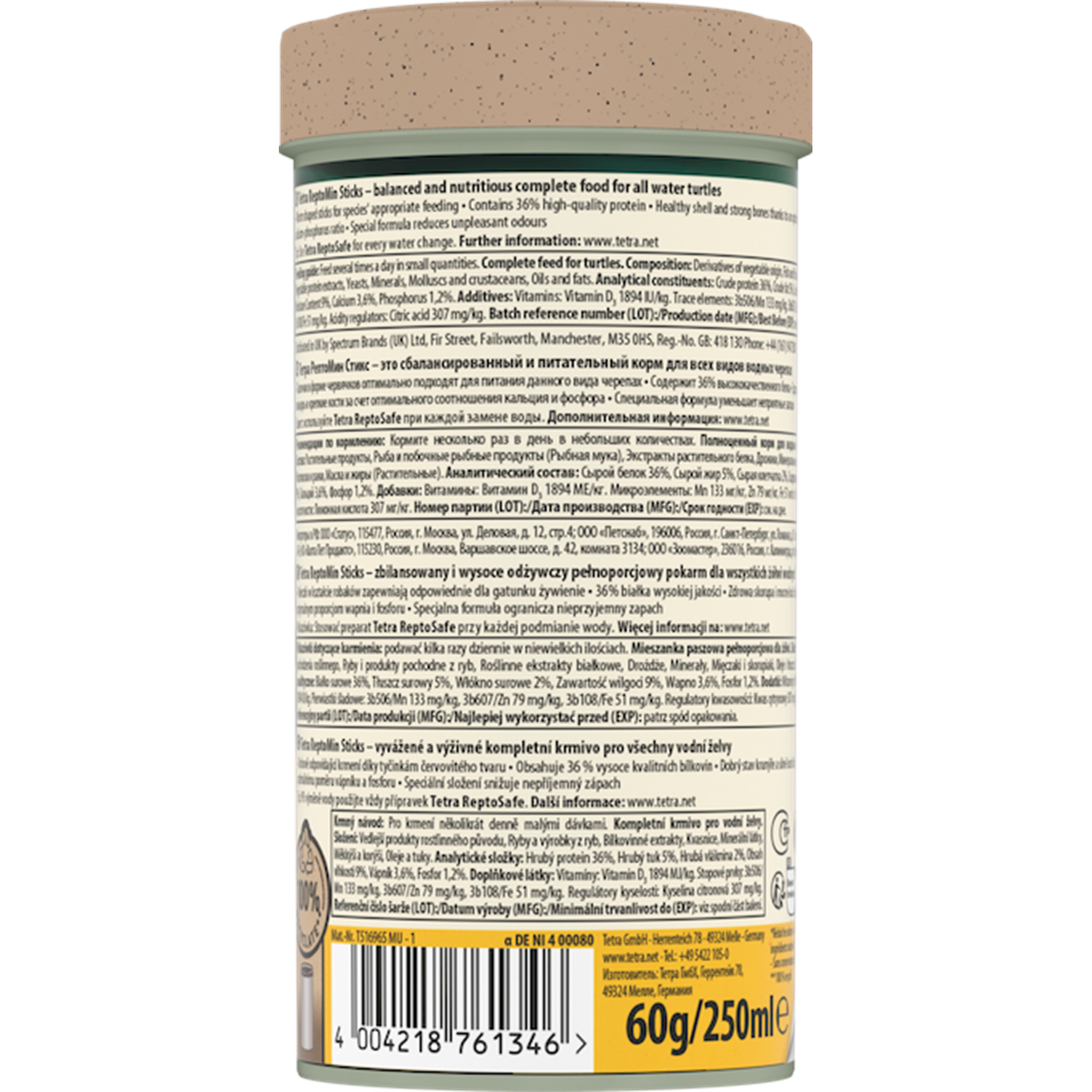 Tetra ReptoMin Sticks, su kaplumbağalarının özel beslenme ihtiyaçlarını karşılamak için geliştirilmiş tam ve dengeli bir yemdir. %36 oranında yüksek kaliteli protein içeriği sağlıklı büyümeyi desteklerken, optimum kalsiyum-fosfor oranı güçlü kemik ve sağlam kabuk gelişimini sağlar. Özel formülü sayesinde hoş olmayan akvaryum kokularını azaltır. Küçük boy çubuk formu, kaplumbağaların kolayca tüketebilmesi için idealdir. Renklendirici ve ilave koruyucu madde içermeyen yüksek kaliteli doğal bileşenlerle hazırlanmış benzersiz tarif, sağlıklı gelişim ve güçlü bağışıklık için güvenilir bir beslenme sunar.